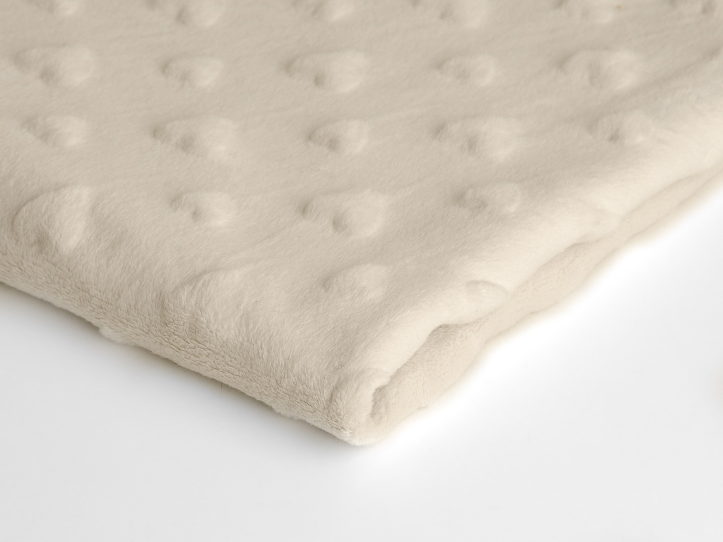 Description Tissu minky coeurs, 330 gr/m2, largeur 160 cm, ecru