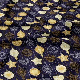 Tissus en coton de Noël au mètre, 160 cm motif Noël 20 bleu-marine