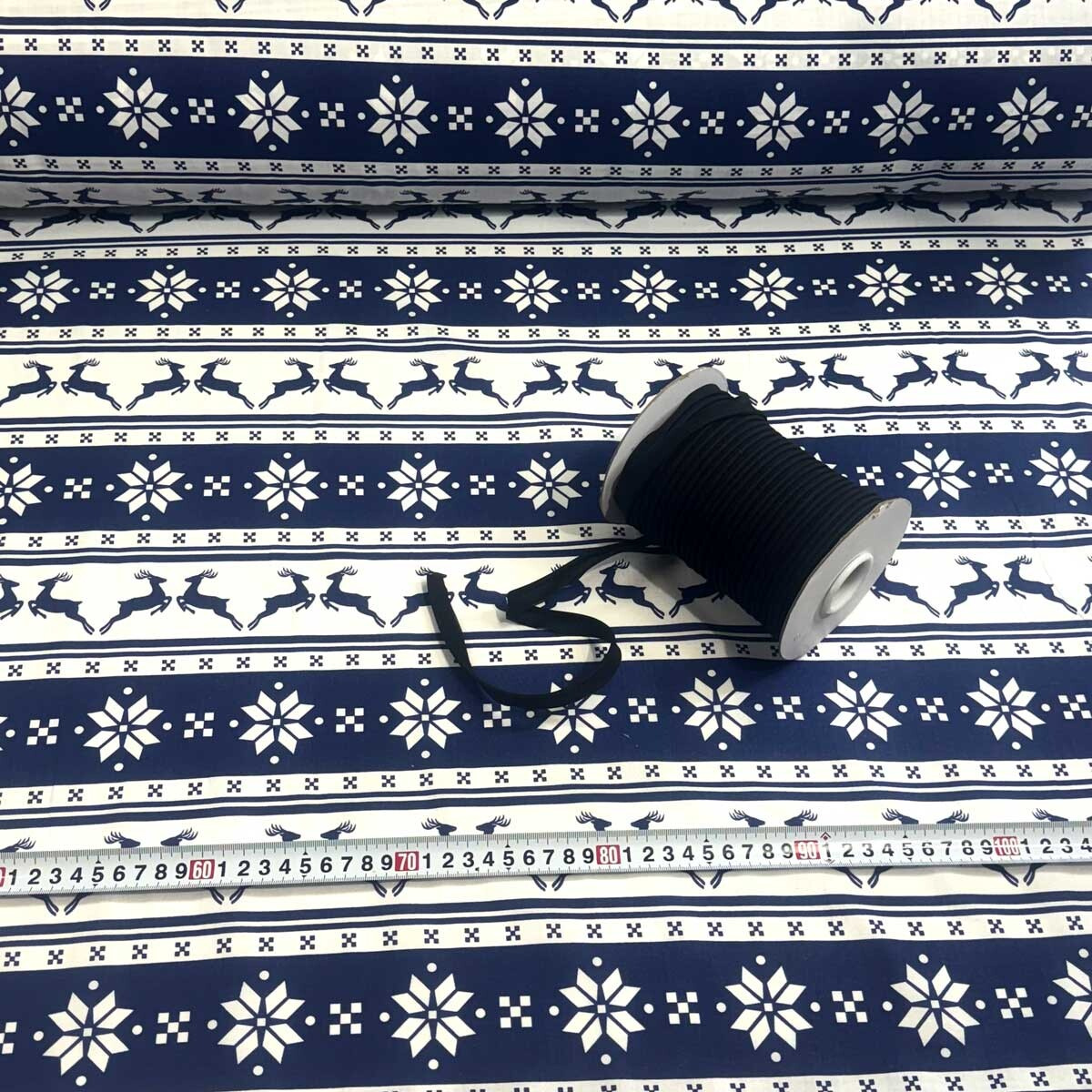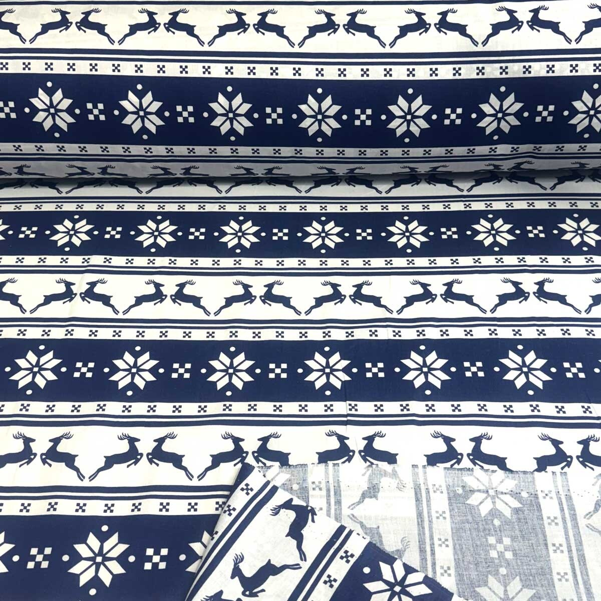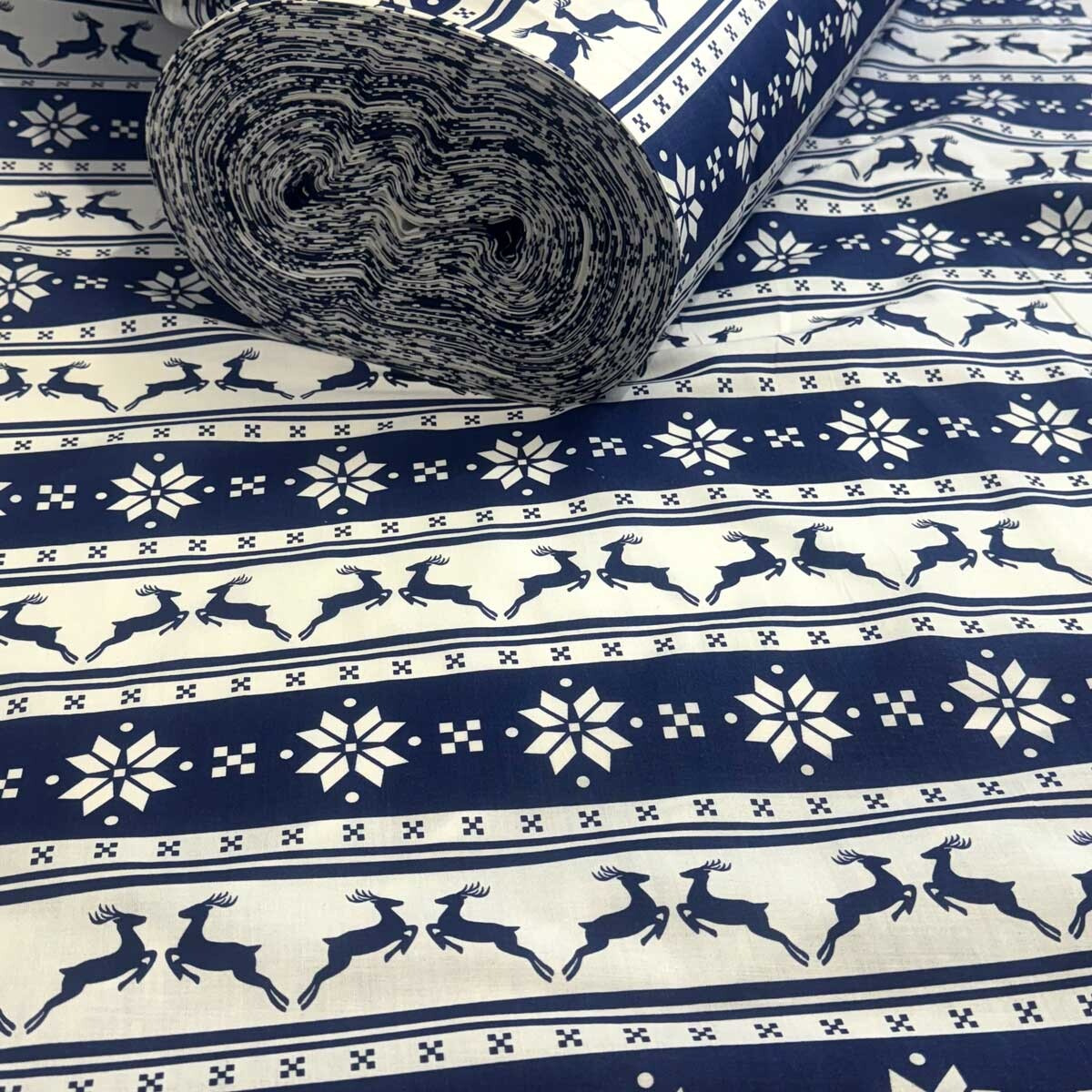 Tissus en coton de Noël au mètre, 160 cm motif Noël Bleu Marine