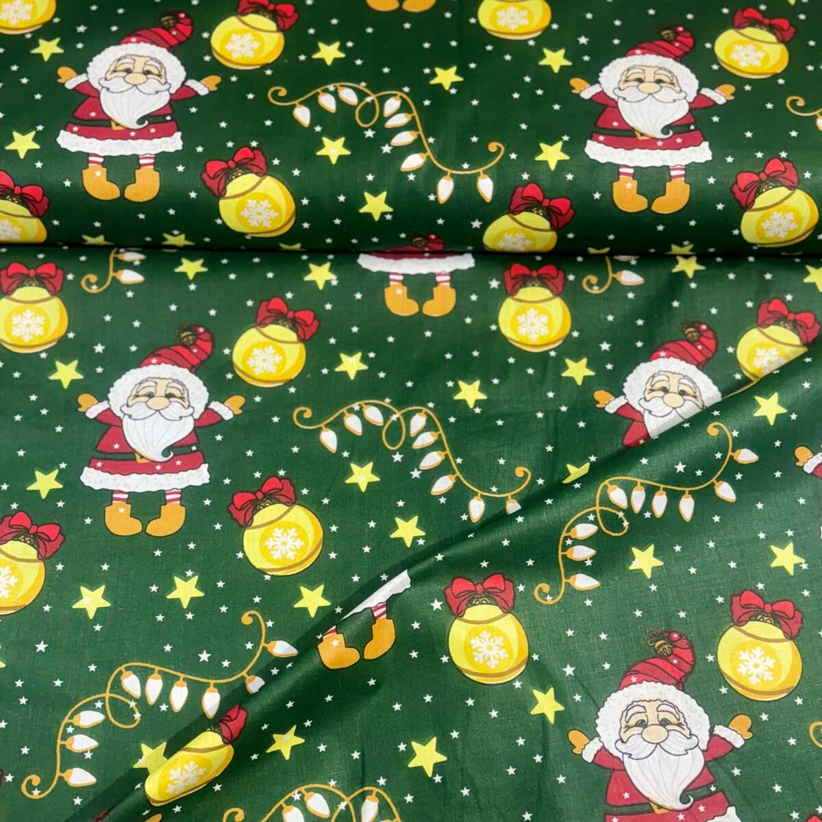 Tissus en coton de Noël au mètre, 160 cm motif Noël verte