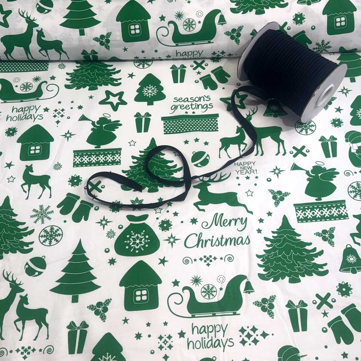 Tissu en coton décoratif avec motif de Noël apportant la joie des fêtes dans votre foyer. Ce tissu est fabriqué à partir de 100 % de coton de première qualité, garantissant légèreté et douceur agréable au toucher.