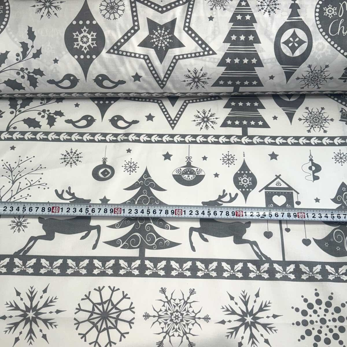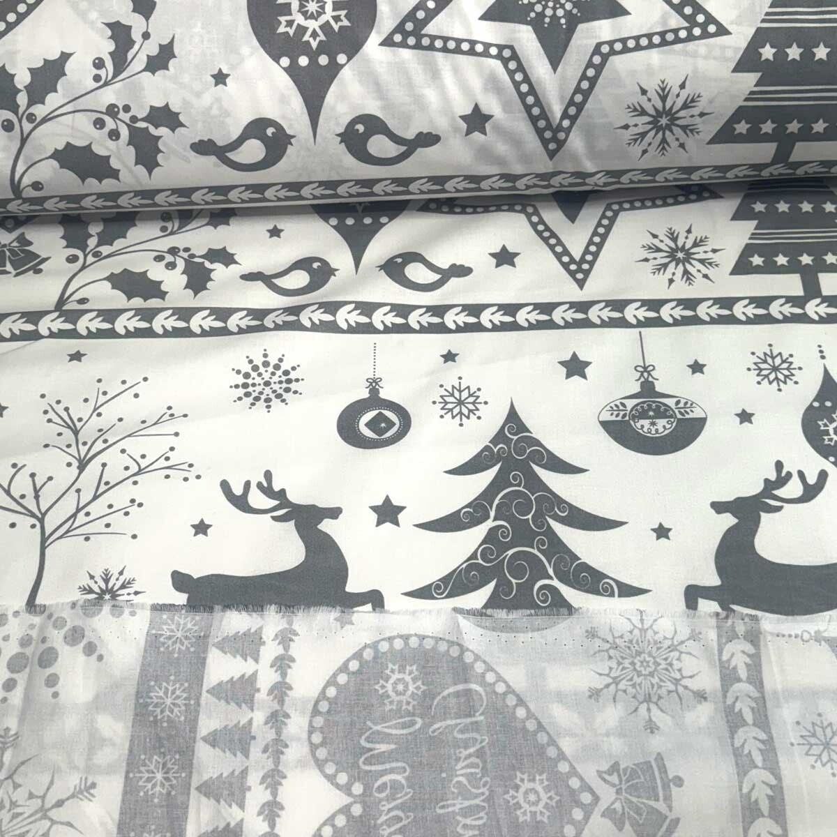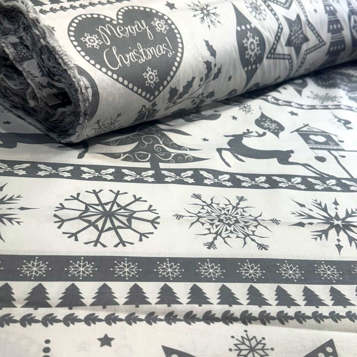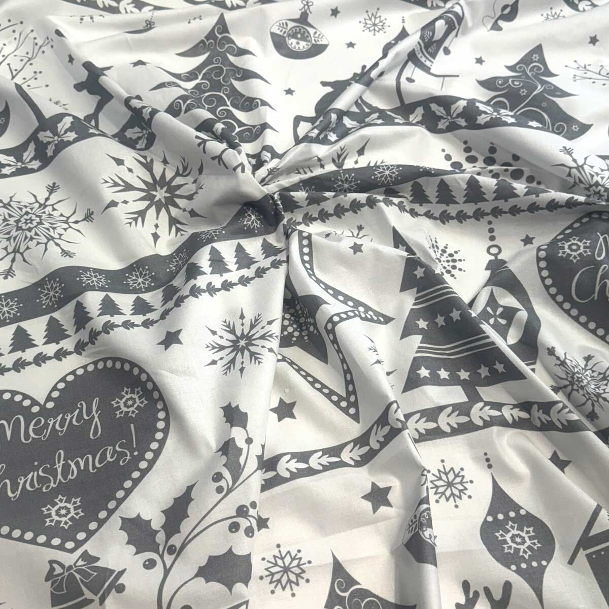 Tissus en coton de Noël au mètre, 160 cm motif Scandinave Gris