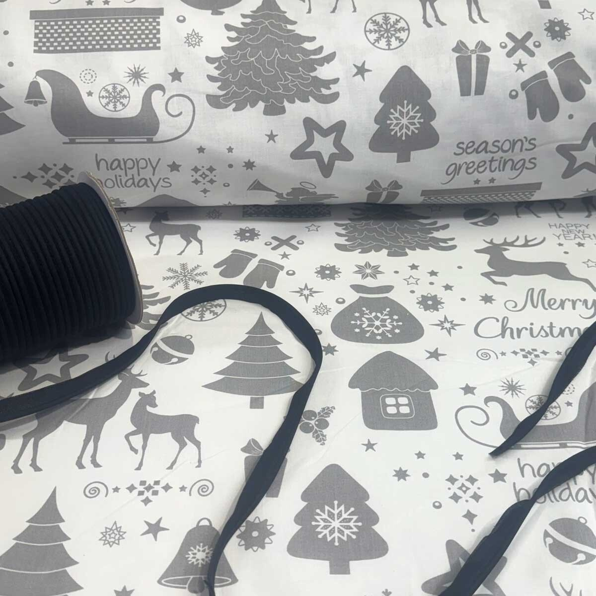 Tissu en coton décoratif avec motif de Noël apportant la joie des fêtes dans votre foyer. Ce tissu est fabriqué à partir de 100 % de coton de première qualité, garantissant légèreté et douceur agréable au toucher.