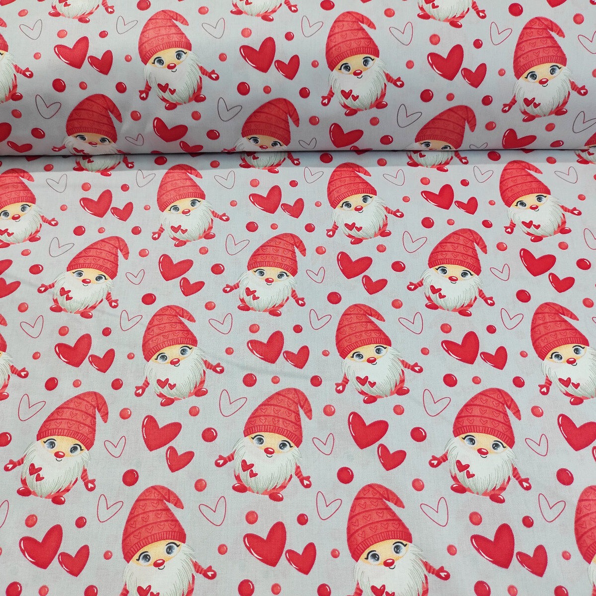 Description Tissus en coton de Noël au mètre, motif Saint Nikolas sur gris, 160 cm