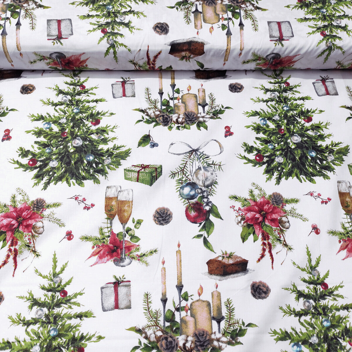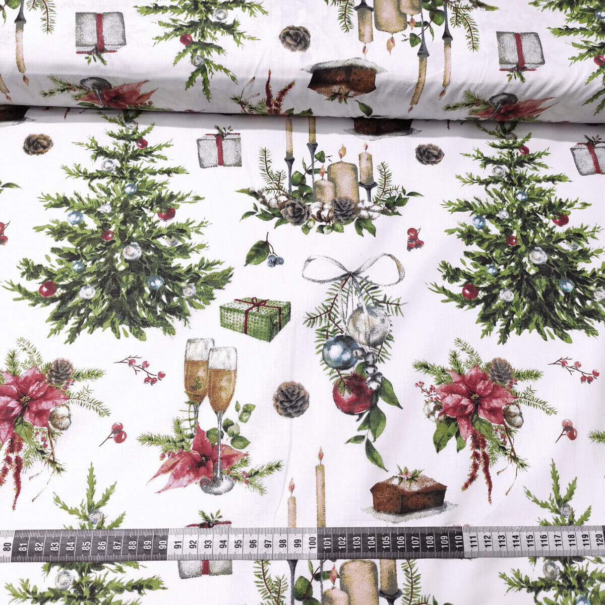 Description Tissus en coton de Noël au mètre, motif Sapin de Noël blanche, 160 cm