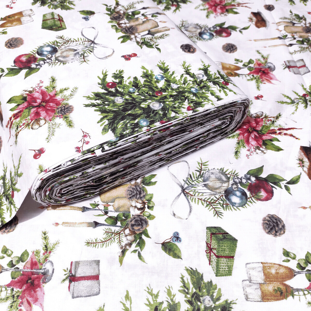 Tissu en coton décoratif avec motif de Noël apportant la joie des fêtes dans votre foyer. Ce tissu est fabriqué à partir de 100 % de coton de première qualité, garantissant légèreté et douceur agréable au toucher.