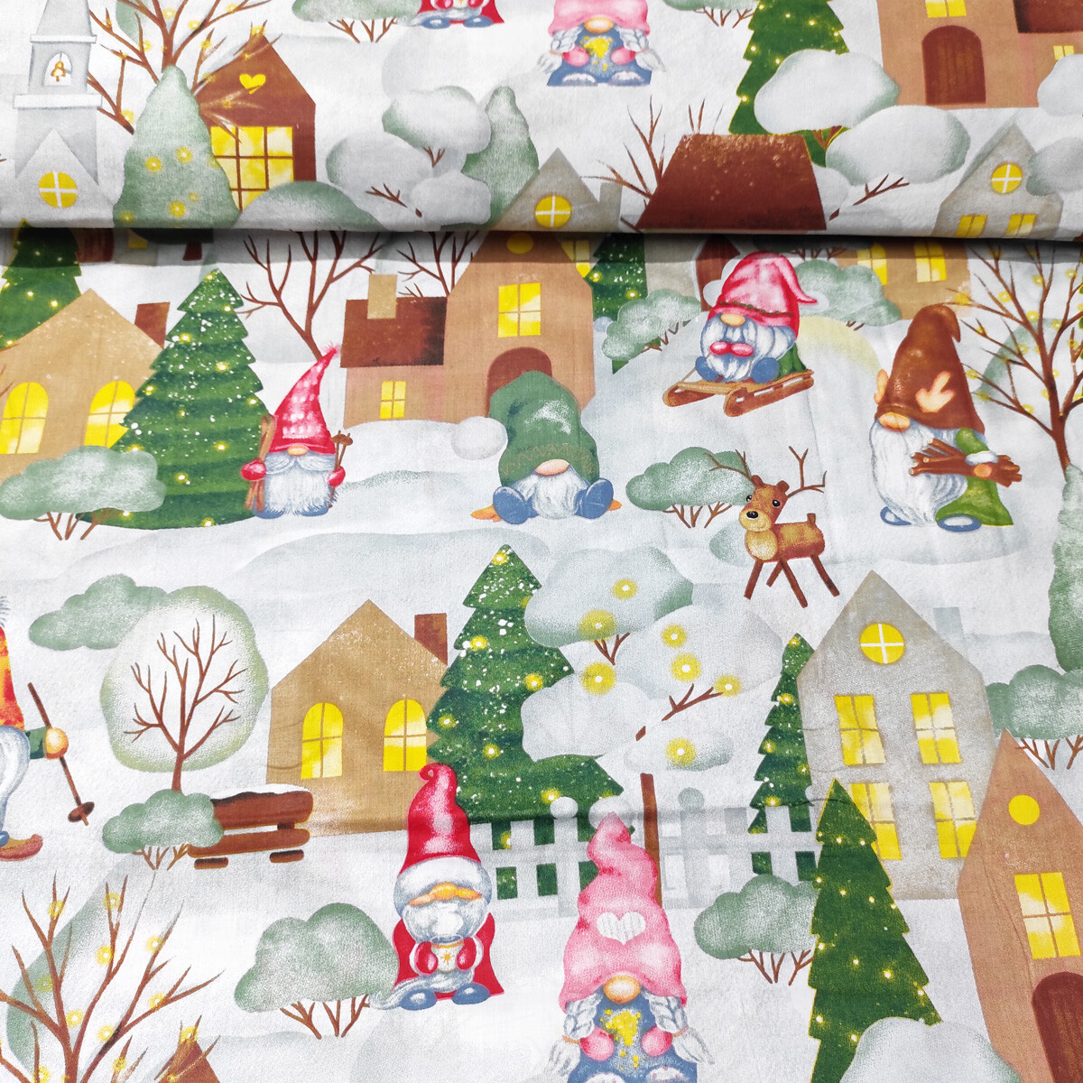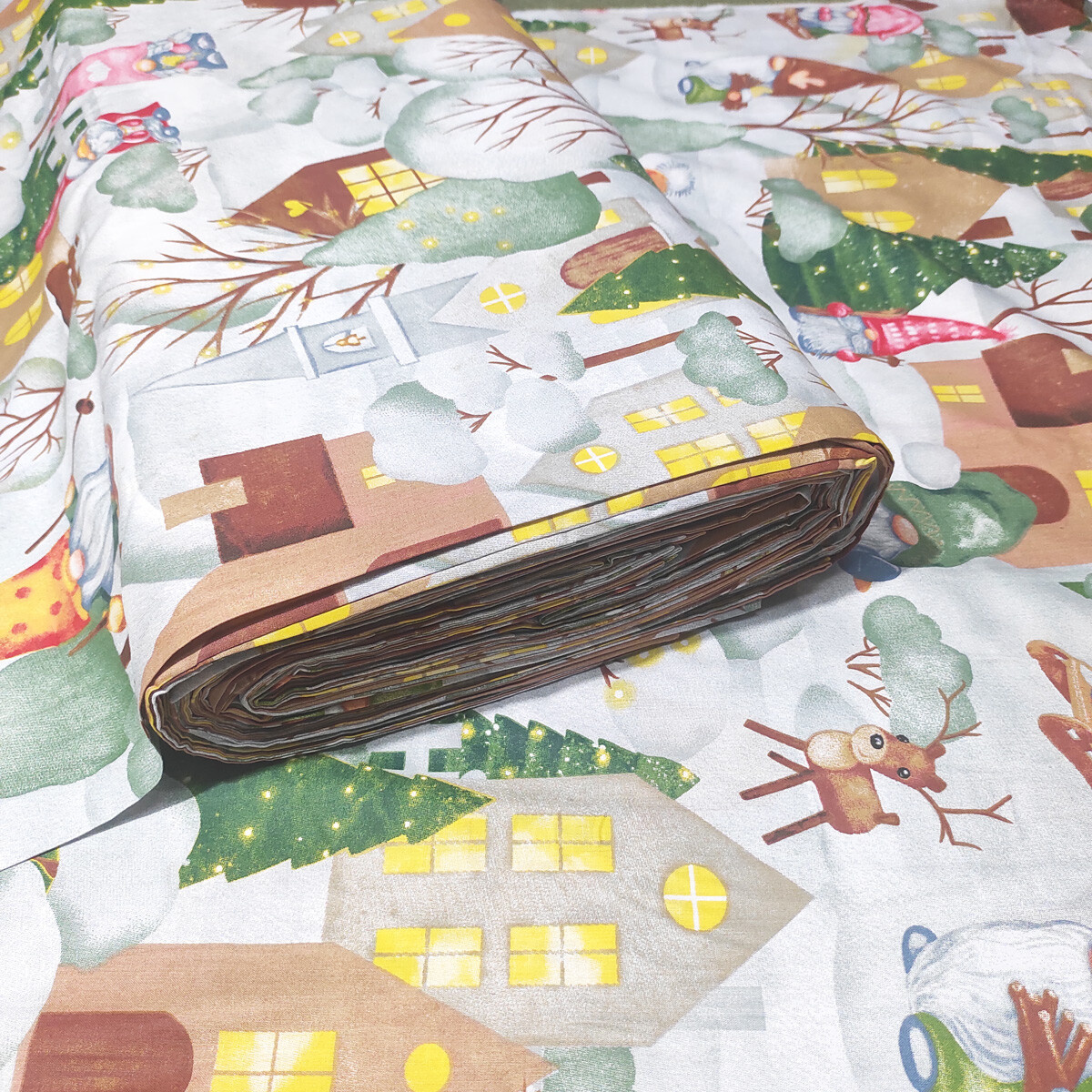 Tissu en coton décoratif avec motif de Noël apportant la joie des fêtes dans votre foyer. Ce tissu est fabriqué à partir de 100 % de coton de première qualité, garantissant légèreté et douceur agréable au toucher.